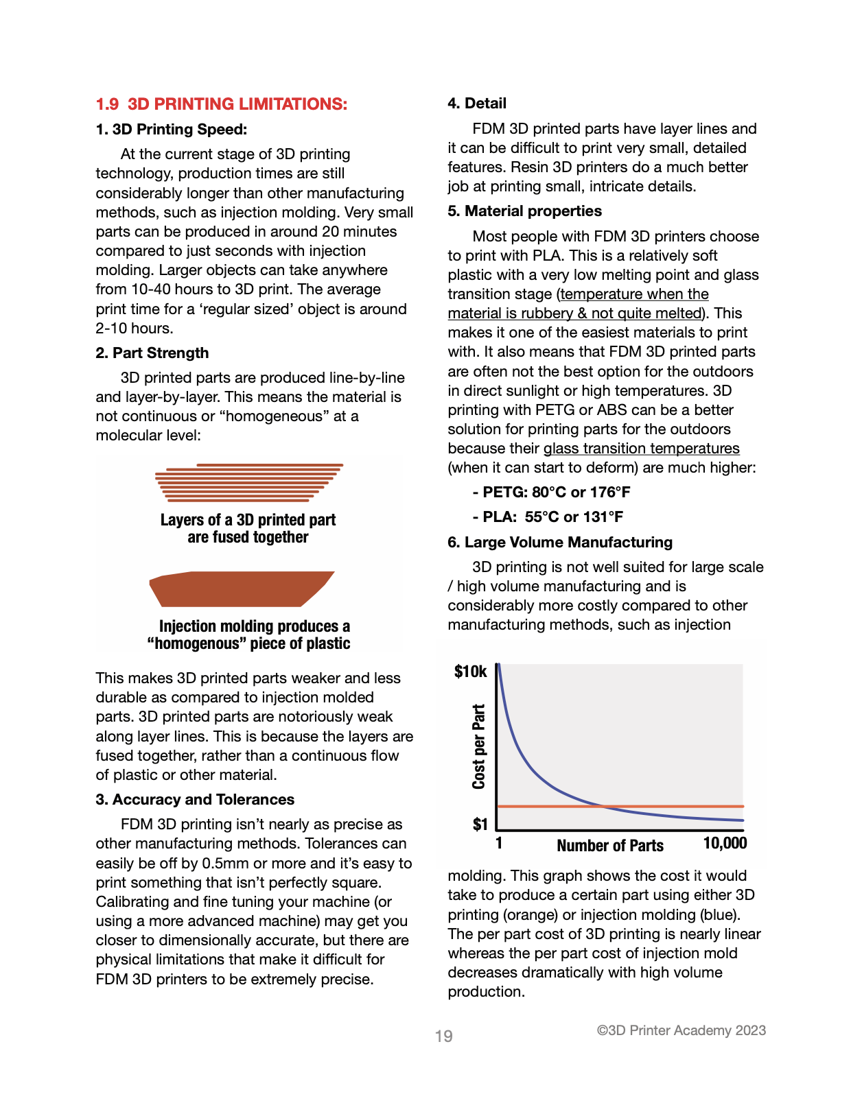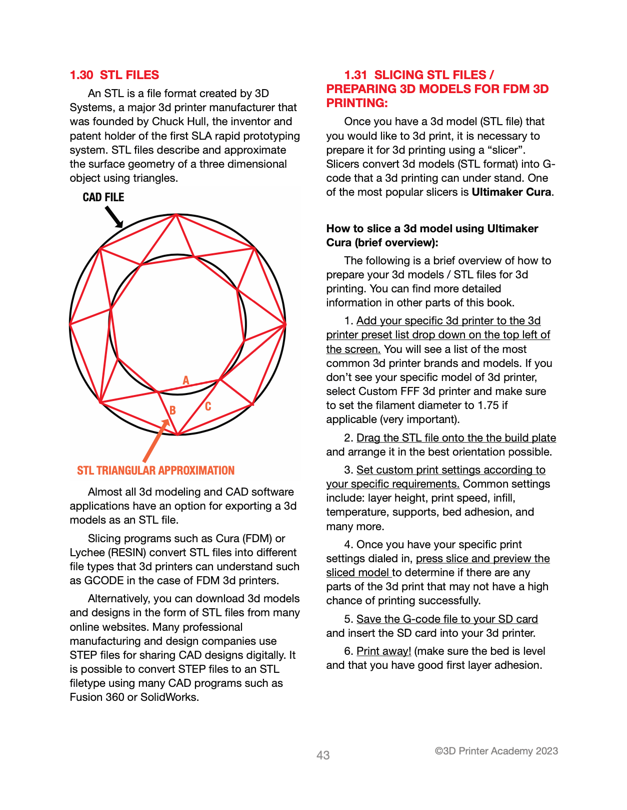 A comprehensive 3d printing resource textbook with 200 pages of in depth information. Includes full color pages with helpful graphics and diagrams. Learn the fundamentals of 3d printing, troubleshoot frustrating issues, learn how to design your own things, and discover interesting facts about 3d printing.