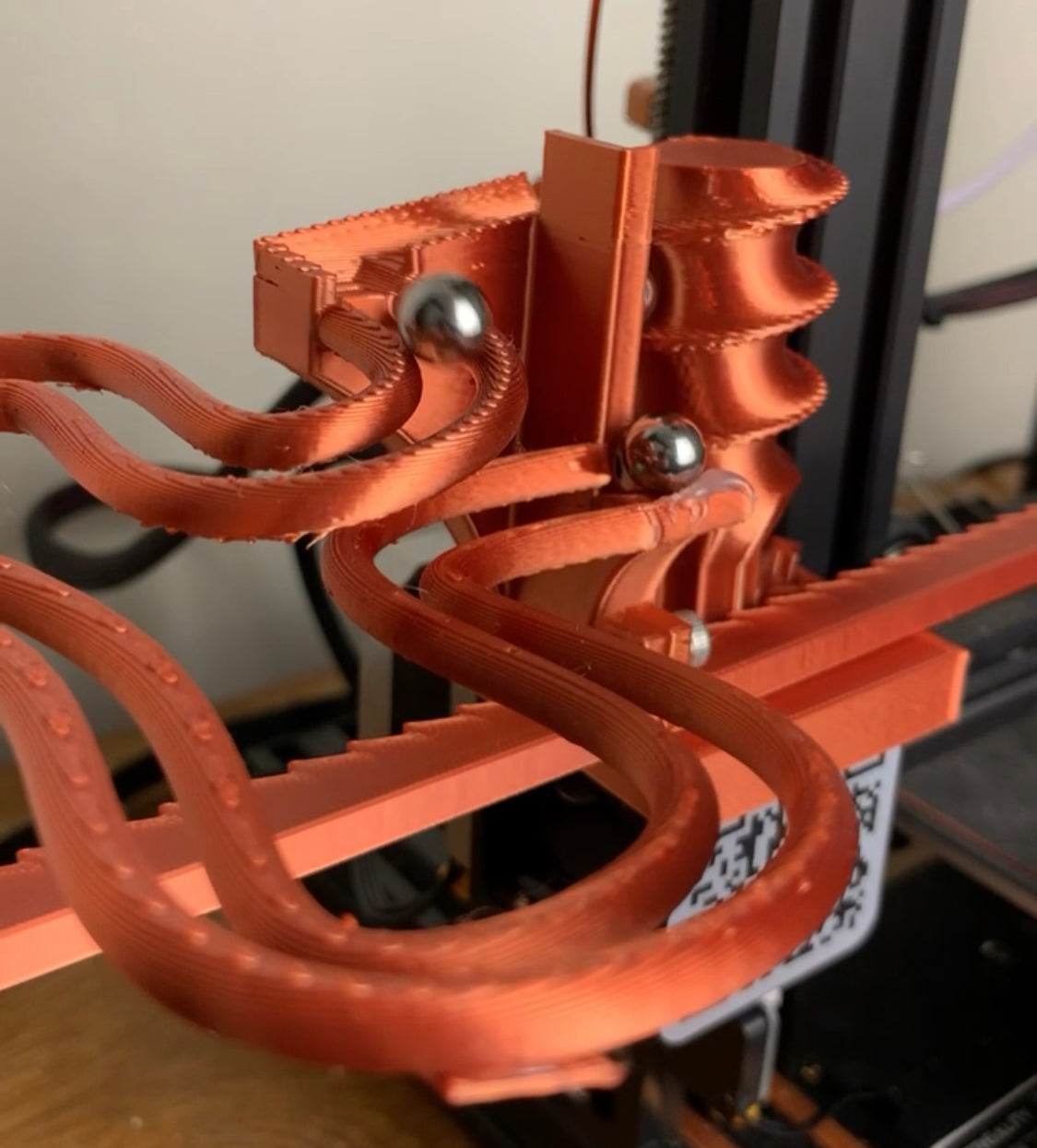 3D printers are not designed to be used as a marble machines. Do not try this at home. 😉