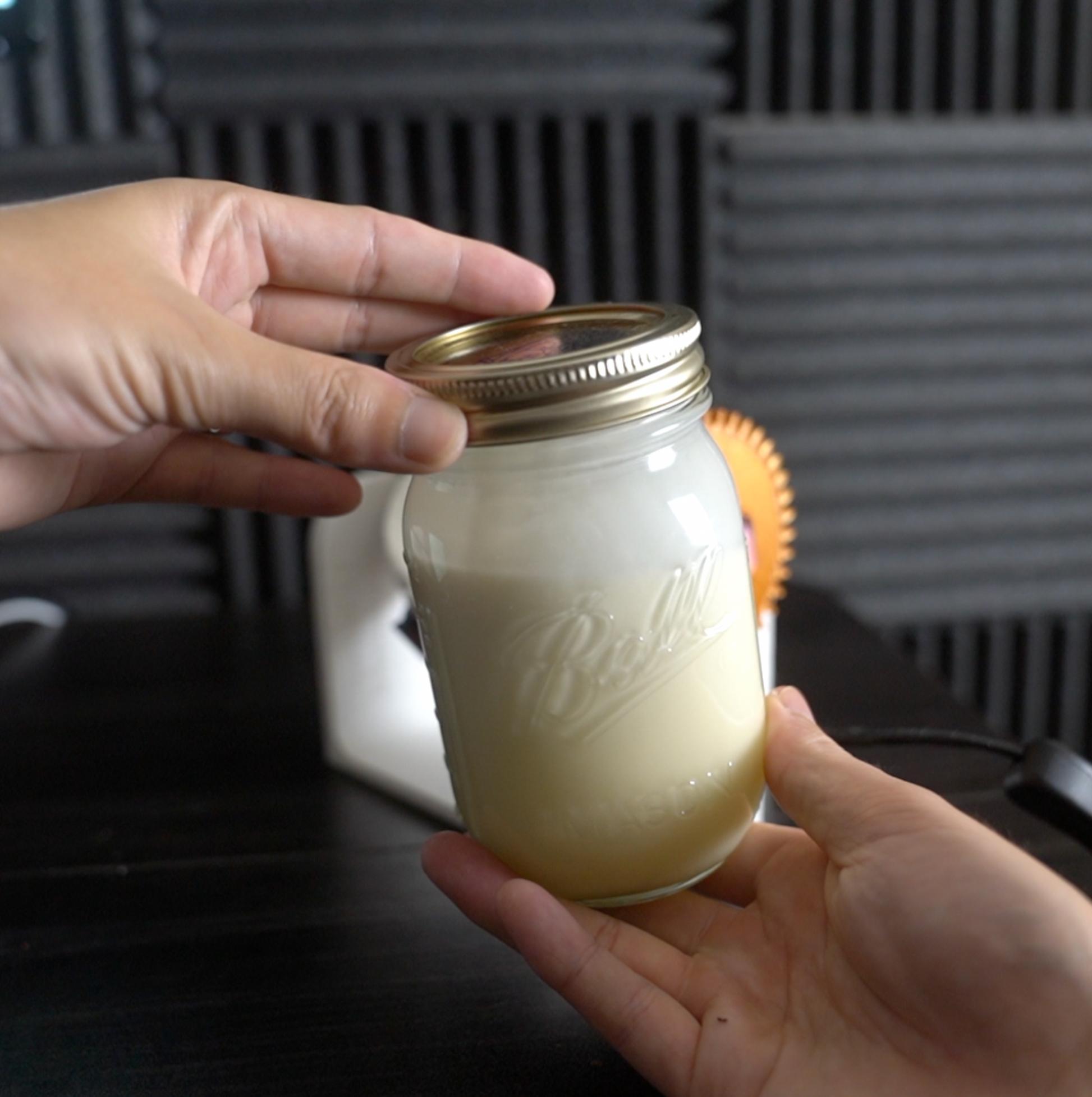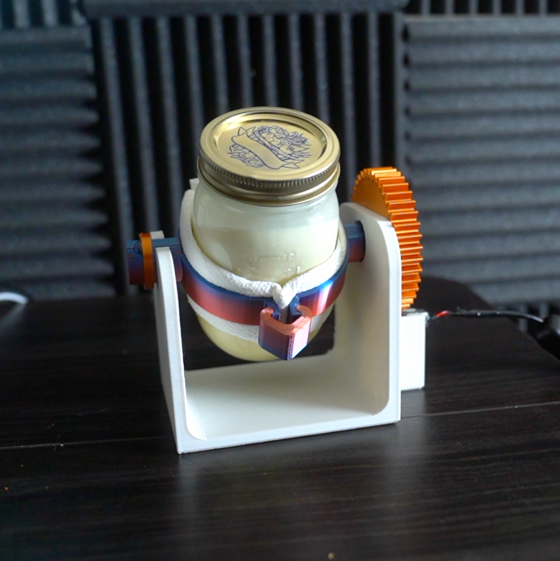 A 3d printable ice cream machine that uses a standard mason jar. Simply fill a mason jar with cream and sugar syrup and place the entire contraption in the freezer with the power cable plugged into a wall outlet.
